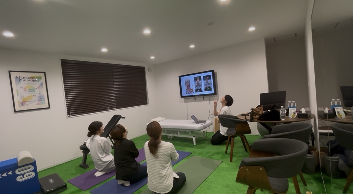 「なぜそこが固まるのか?」「どこを伸ばせば美姿勢に戻るのか?」という根本的な部分をレクチャーしました。